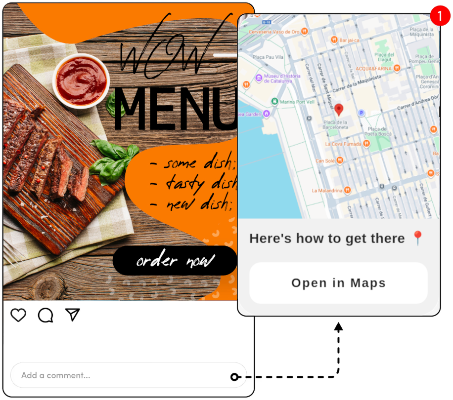 posts. The user then receives a direct message (DM) with a link to Google Maps with your business's